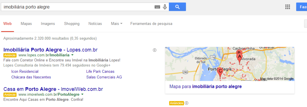 Abaixo temos um exemplo utilizando o termo "Imobiliária Porto Alegre":